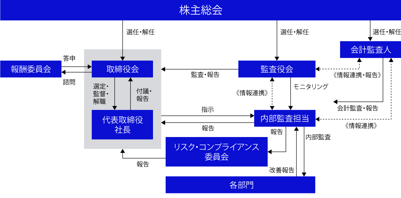当社は、質の高い経営(経営の適法性・透明性・健全性・公平性)を確保しつつ、持続的な企業価値の向上を図ることを目的として、コーポレート・ガバナンスの強化に継続的に取り組んでまいります。