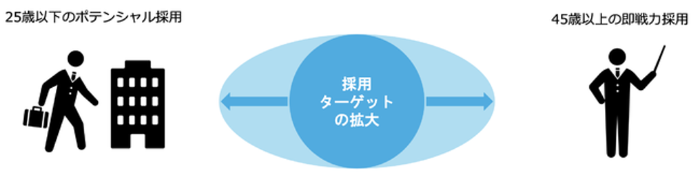 ➀母集団形成苦戦により、採用における年齢条件緩和が進む