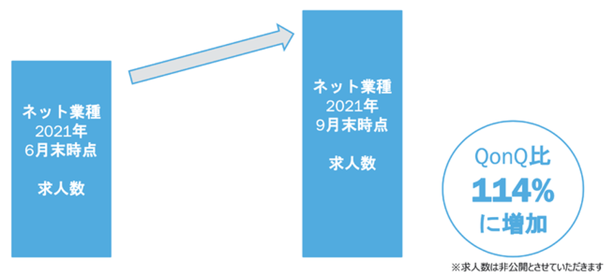 ➀インターネット業種の求人数が最も伸びている