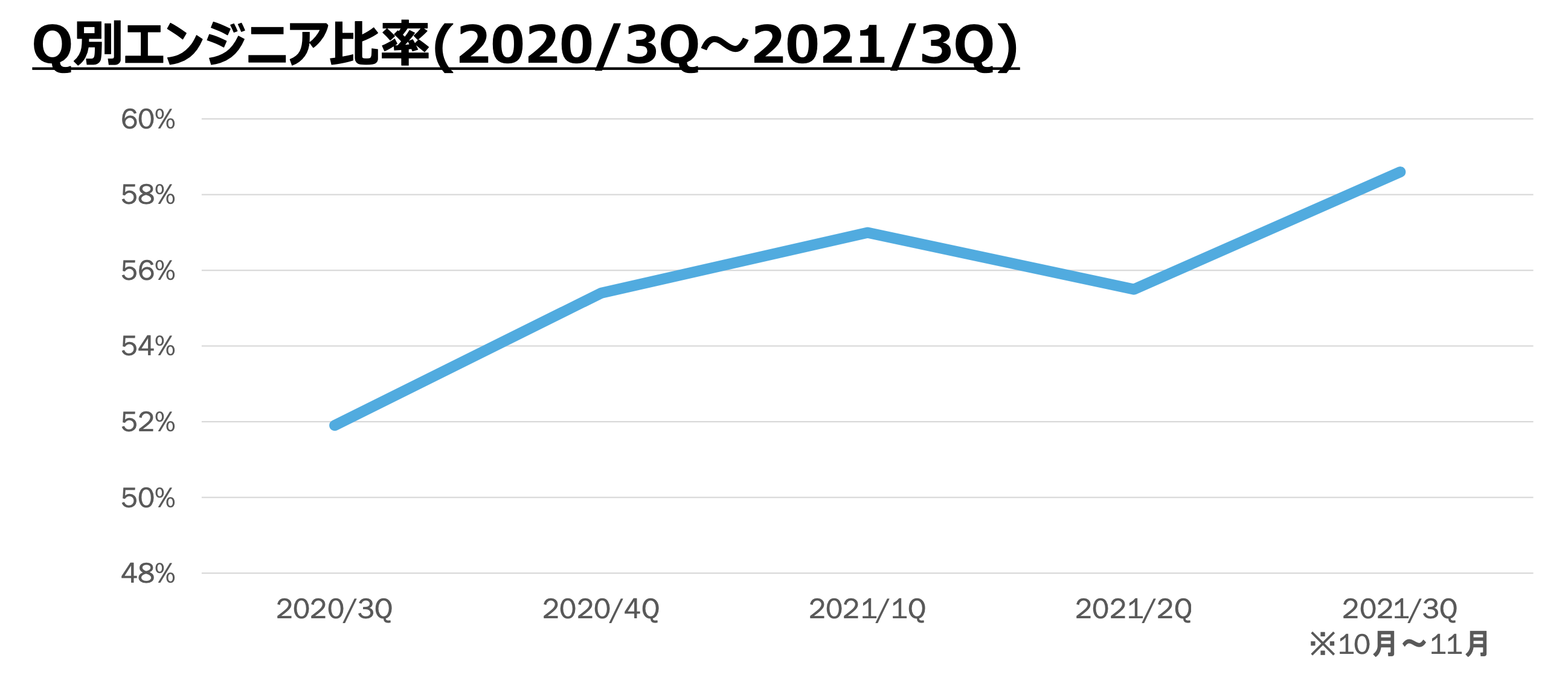 今後も引き続きエンジニアの集客に注力するため、現在の比率は継続される見込みです。