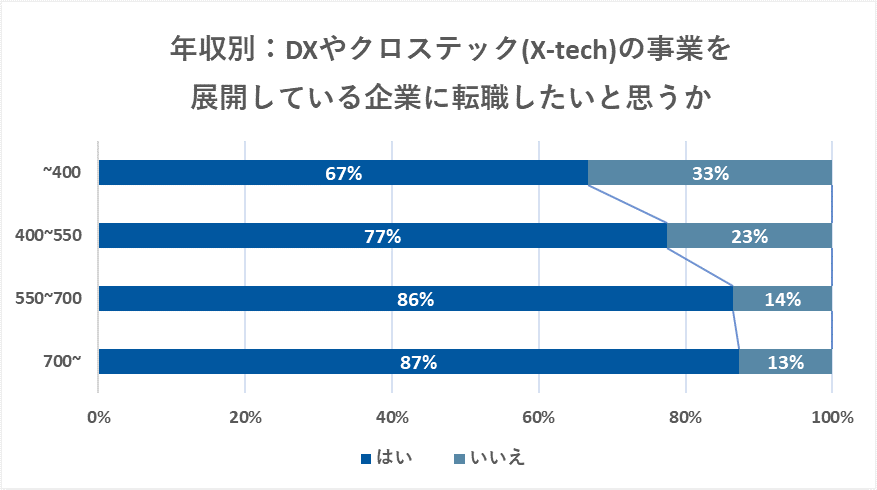 2 .DXやクロステック(X-tech)の事業を展開している企業に転職したいと思いますか