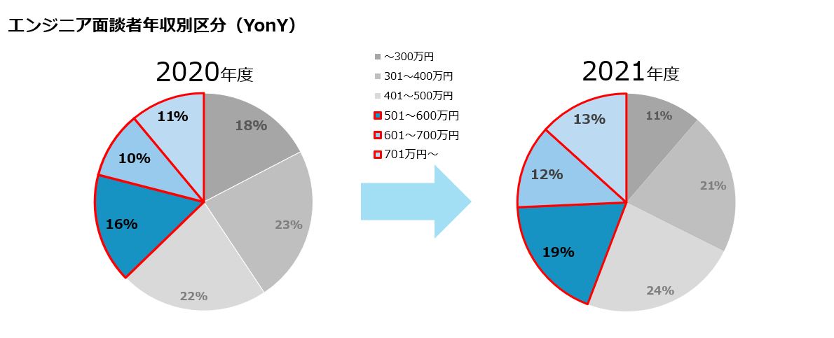 年収501万円以上の即戦力層の登録者数が増加(昨年同月対比)
